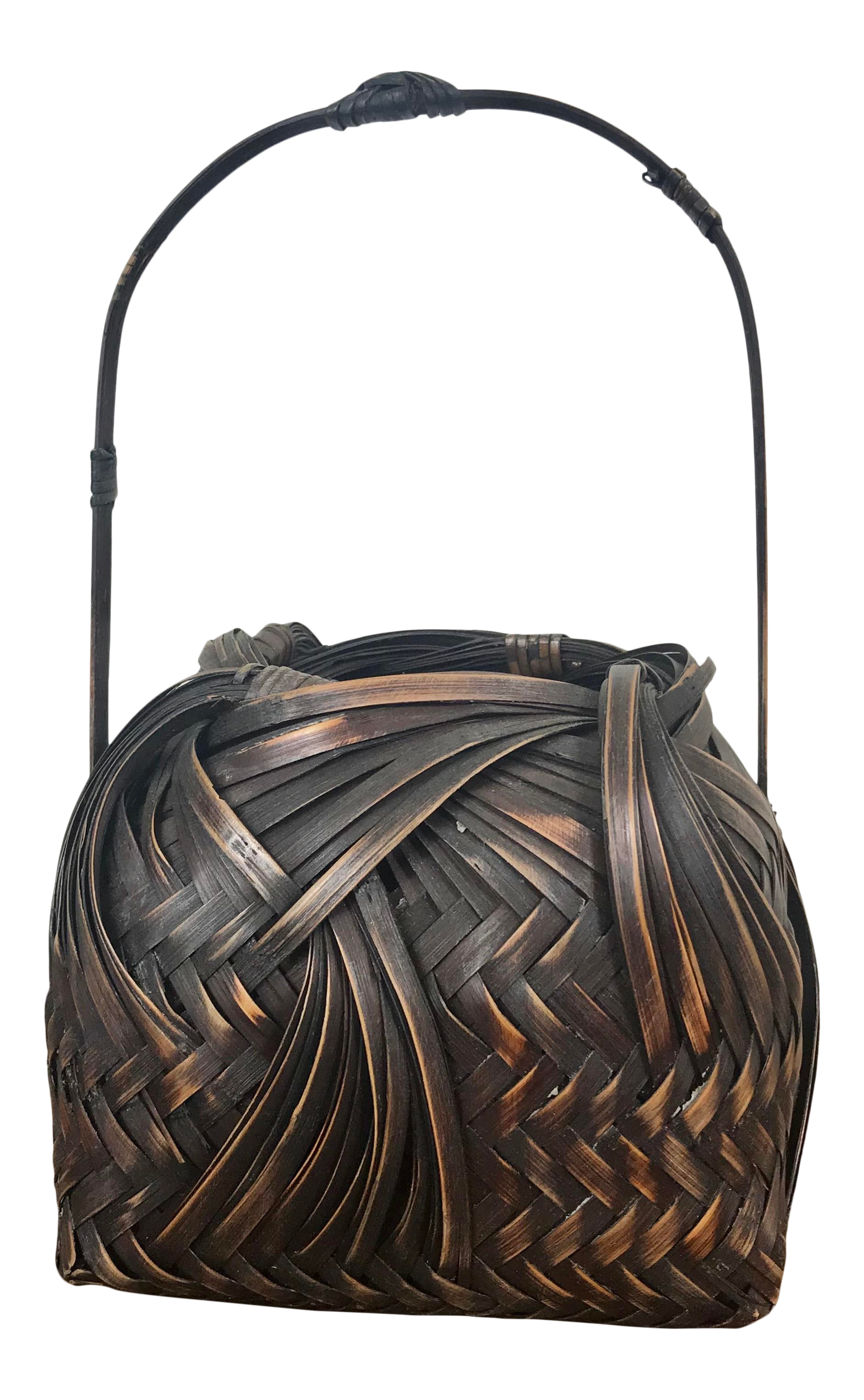 Dark Brown Wicker Basket With Handle Chairish from chairish-prod.freetls.fastly.net