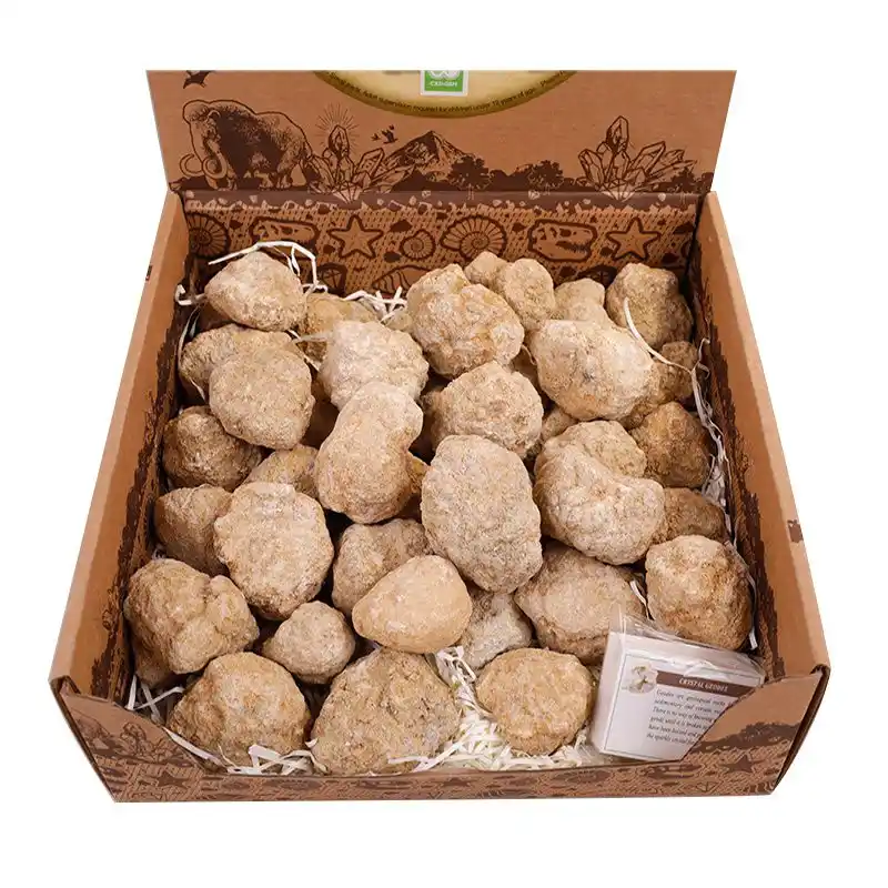 From the outside a geode looks like an ordinary rock. They are the only source of tuff, calcite, and amethyst. Plaster of paris (found in hobby shops) or an eggshell.