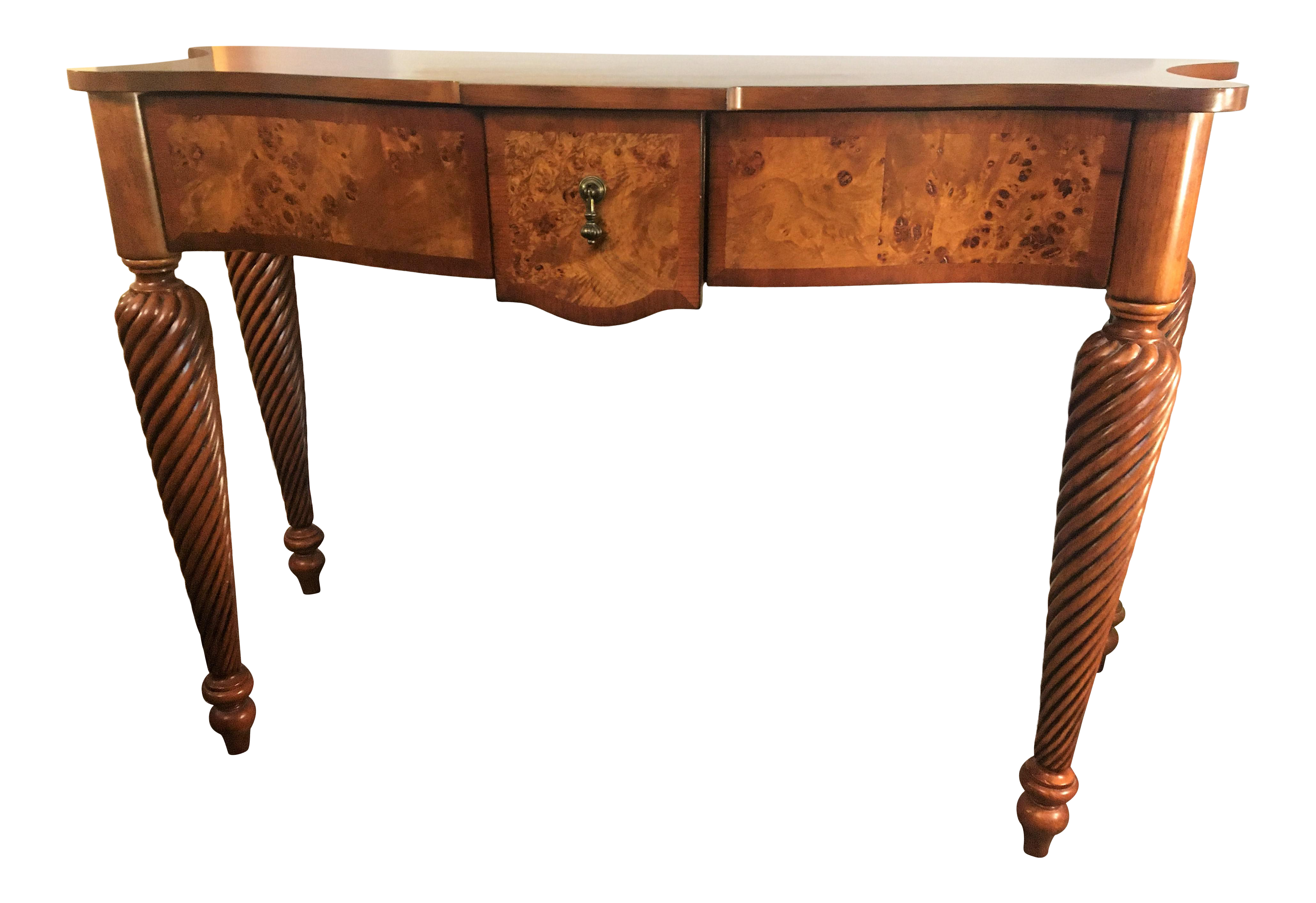 30+ Brown Console Table With Drawers. A console table or sofa table is a highly versatile and functional piece of furniture. Narrow console table, four drawers, six turned post legs, lower storage shelf, hand painted textured black/brown finish with light gloss sheen.