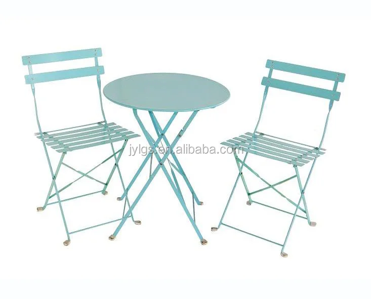 Metal bistro set of pale blue table and 4 folding chairs for the garden or patio. Multiple colors and sizes available. Shop 120 top bistro table and chairs and earn cash back all in one place. When you're shopping for party chairs, keep in mind you aren't just limited to the standard metal folding chair because there are a lot more options available to you.